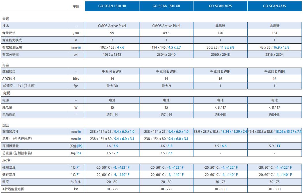 GO-SCAN 數(shù)字平板探測器技術(shù)參數(shù)